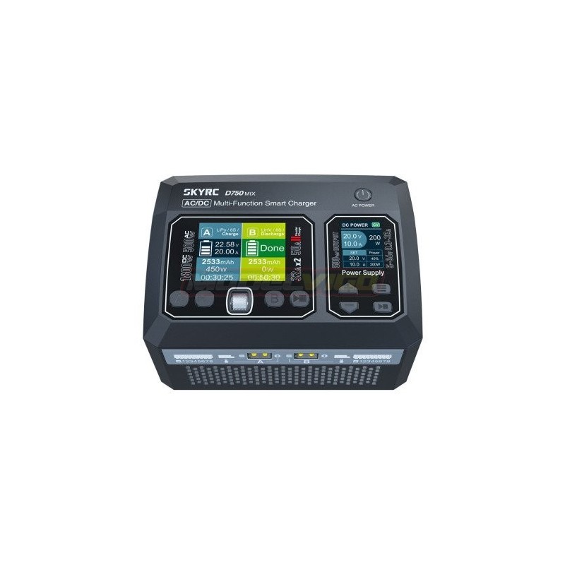 Con una versatilidad excepcional, el D750 MIX puede cargar una amplia gama de tecnologías de baterías. Desde LiPo, LiFe, Li-ion, LiHV, Pb, NiMH hasta NiCd.